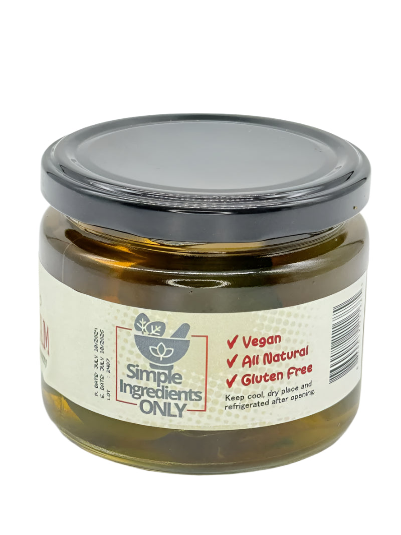 Ingredients: Unripe green figs, cane sugar, lemon juice and raw almond pieces