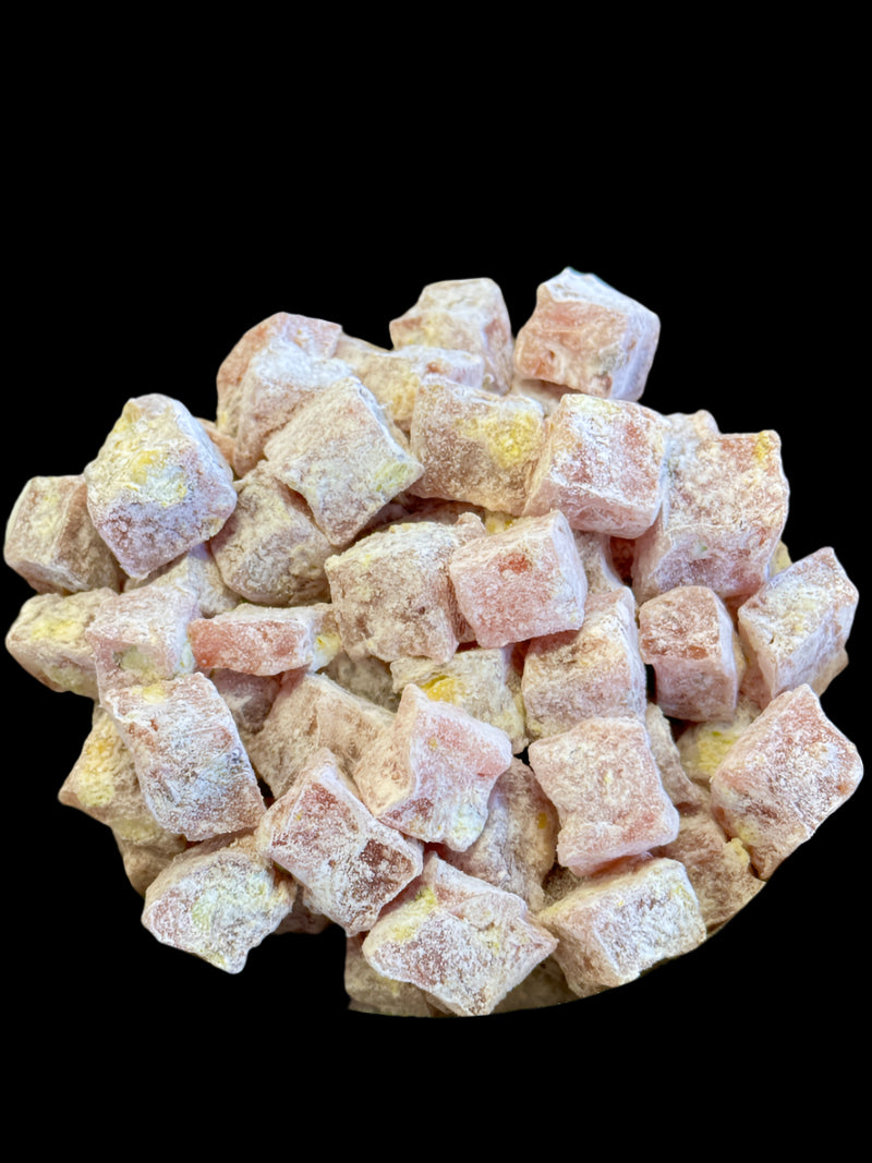 Delicious fruity and flowery flavors, a soft and chewy texture with the perfect balance of sweetness and consistency and liberally infused crunchy grace of pistachio slivers will all greet you with every bite. Pistachio-filled thin cut lokums have been ideally flavored so that they do not cause a burning sensation in the throat after eating. Enjoy it with loved ones or treat yourself to a moment of decadence.