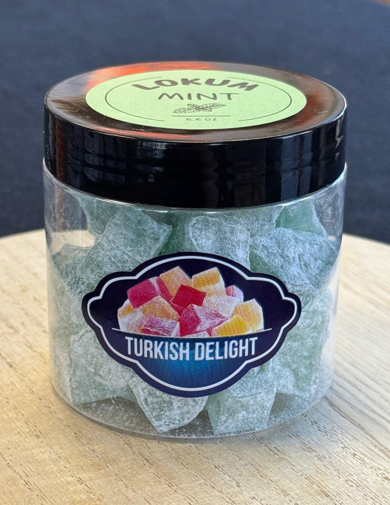 Try our mint lokum and discover the delightful combination of taste and tradition. This delicious treat embodies the soft, chewy texture of a traditional Turkish treat, perfectly capturing the essence of mint in its purest form. Every cube has a thin coating of powder sugar, which gives it a delicate finish that improves the flavor and guarantees that it won't stick as you enjoy the refreshing mint infusion.