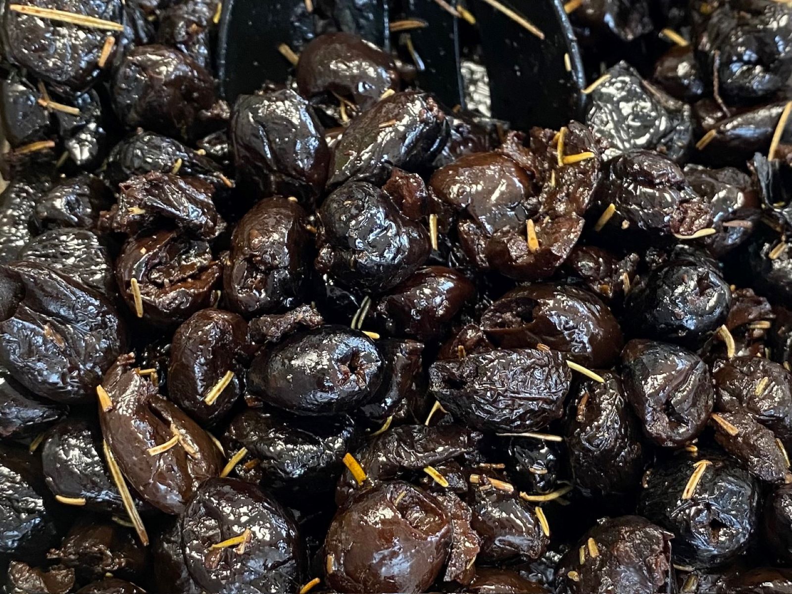 These olives have the texture and wrinkled look of prunes, and their flavor is substantial and beautifully concentrated.
