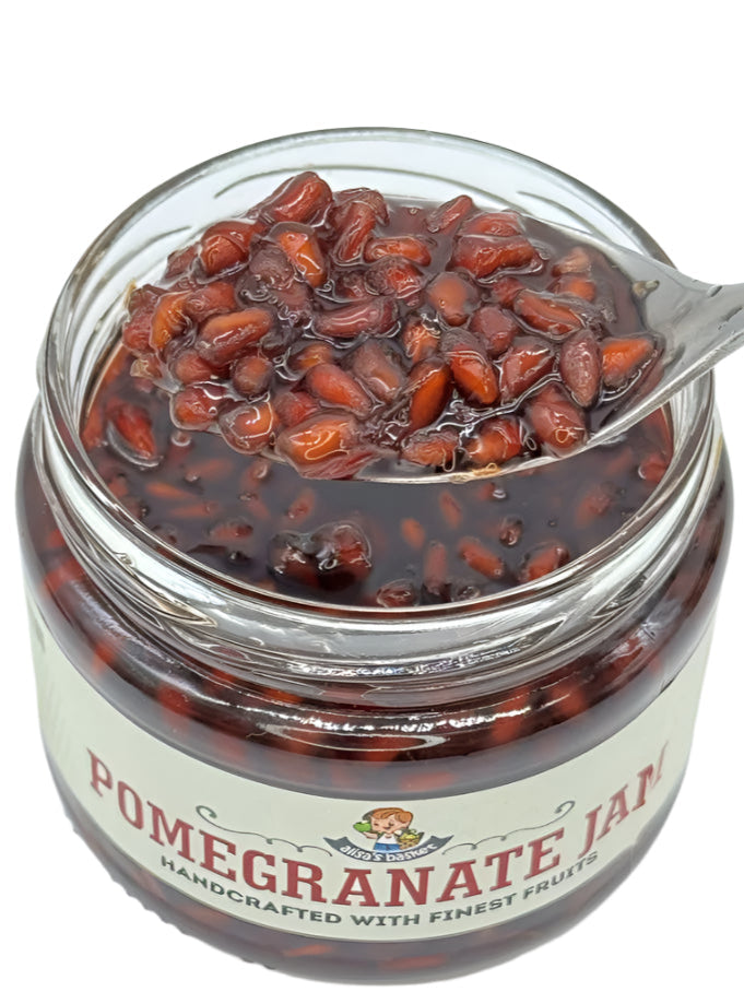 We use only the freshest pomegranate seeds to make our pomegranate jams. With each mouthful, the pomegranate's inherent sweetness and subtle tartness will enchant your palate. This unusual jam is a delicious complement to your table or the ideal present for your loved ones.